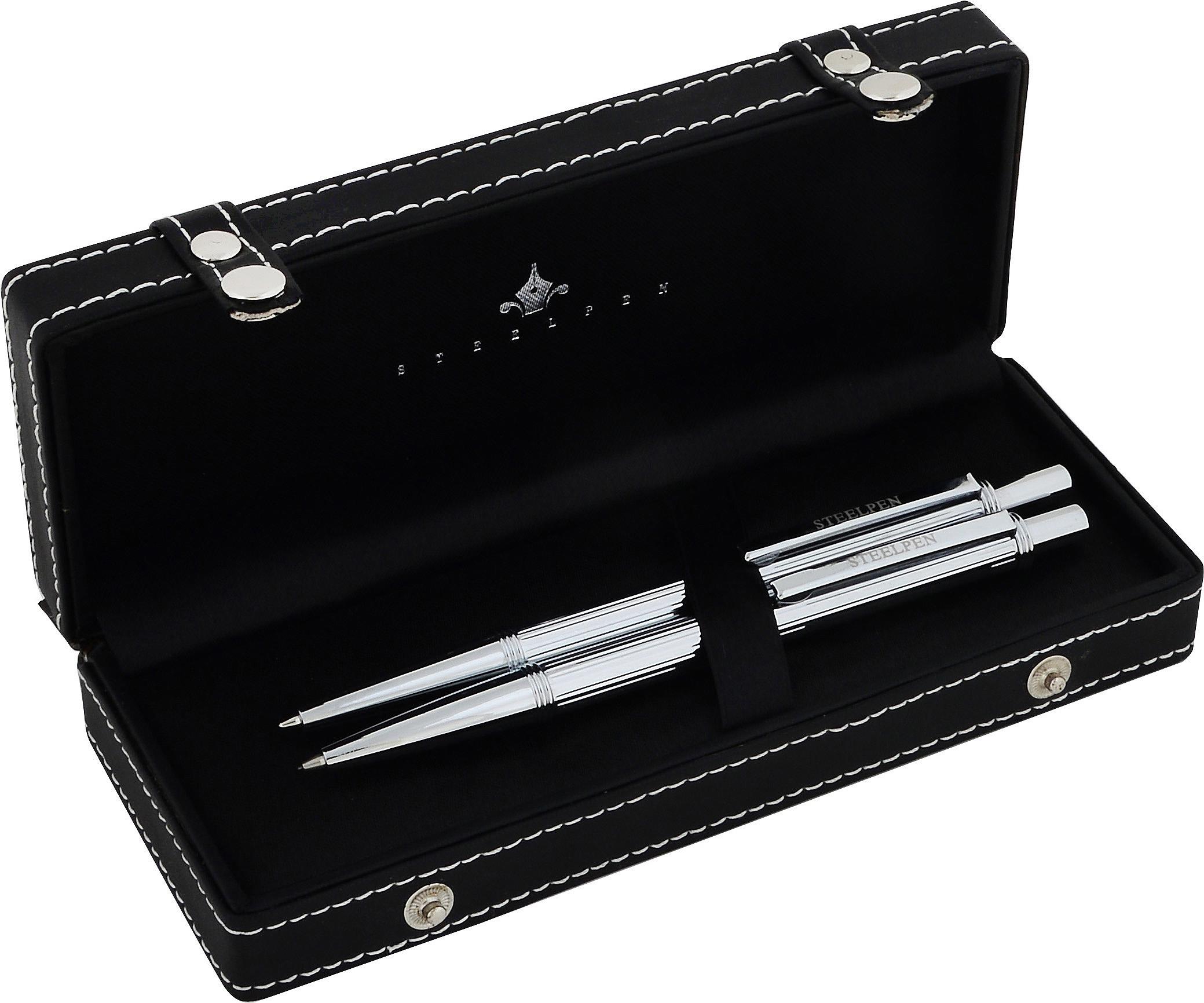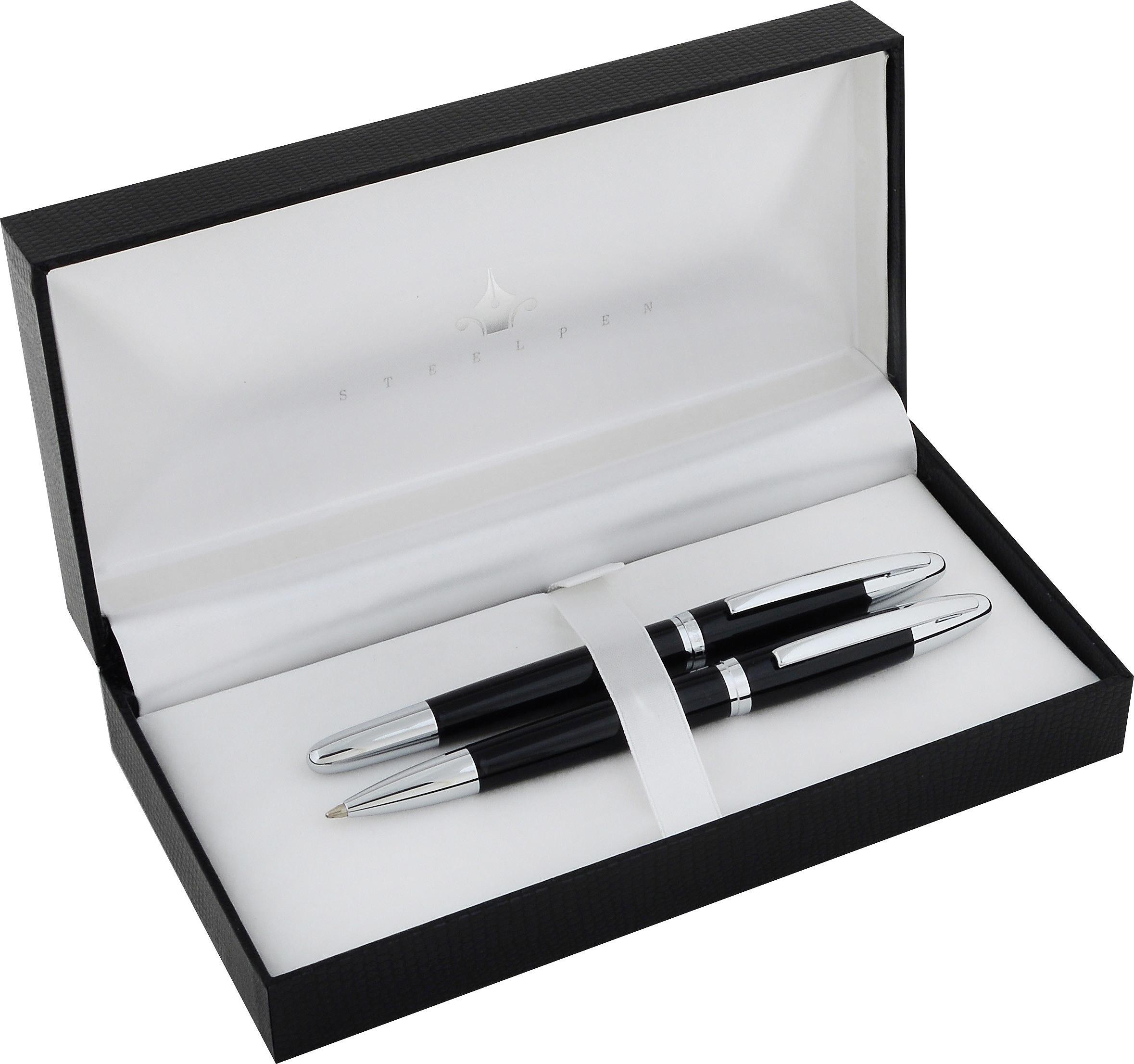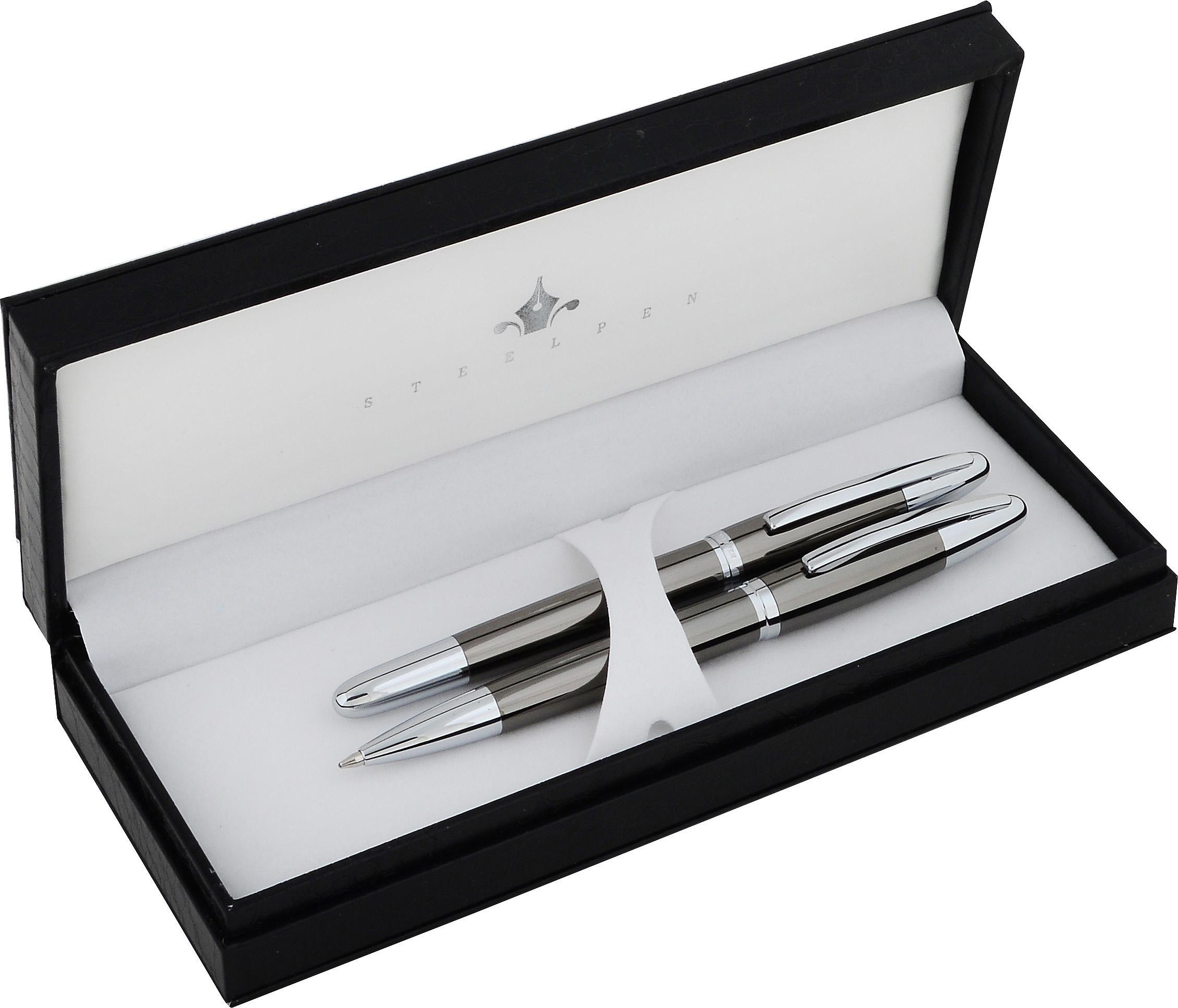 STEELPEN WORLD SERİSİ 2710 KROM SİYAH DOLMA KALEM + TÜKENMEZ KALEM