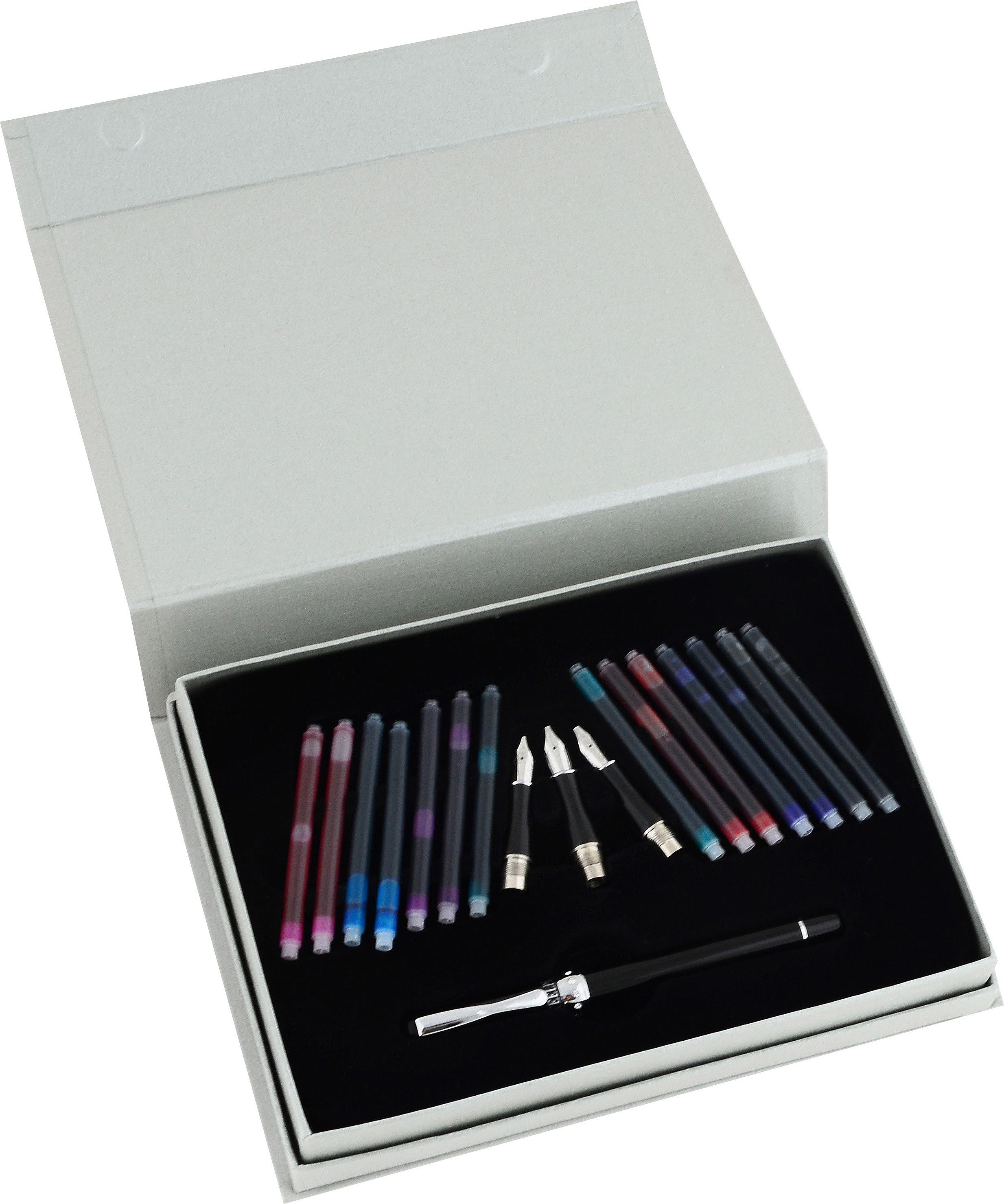 STEELPEN CALLİGRAPHY SERİSİ SS-0801 SET (SİYAH TAŞLI KALEM+3 FARKLI UÇ+ 14 ADET RENKLİ KARTUŞ)