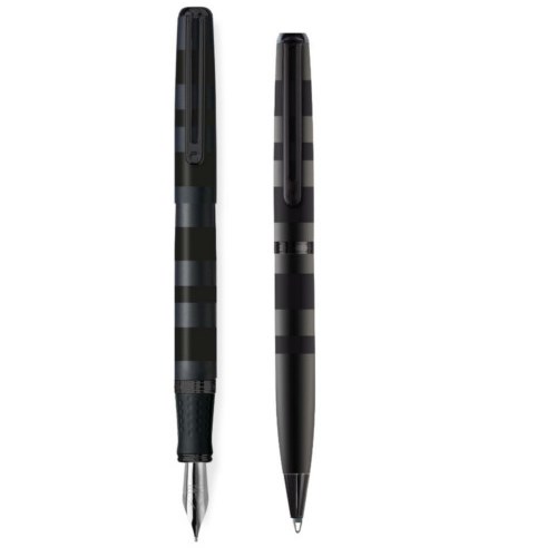 INOXCROM WALL STREET SERİSİ ELEGANCE BLACK RAYAS DOLMA KALEM + TÜKENMEZ KALEM