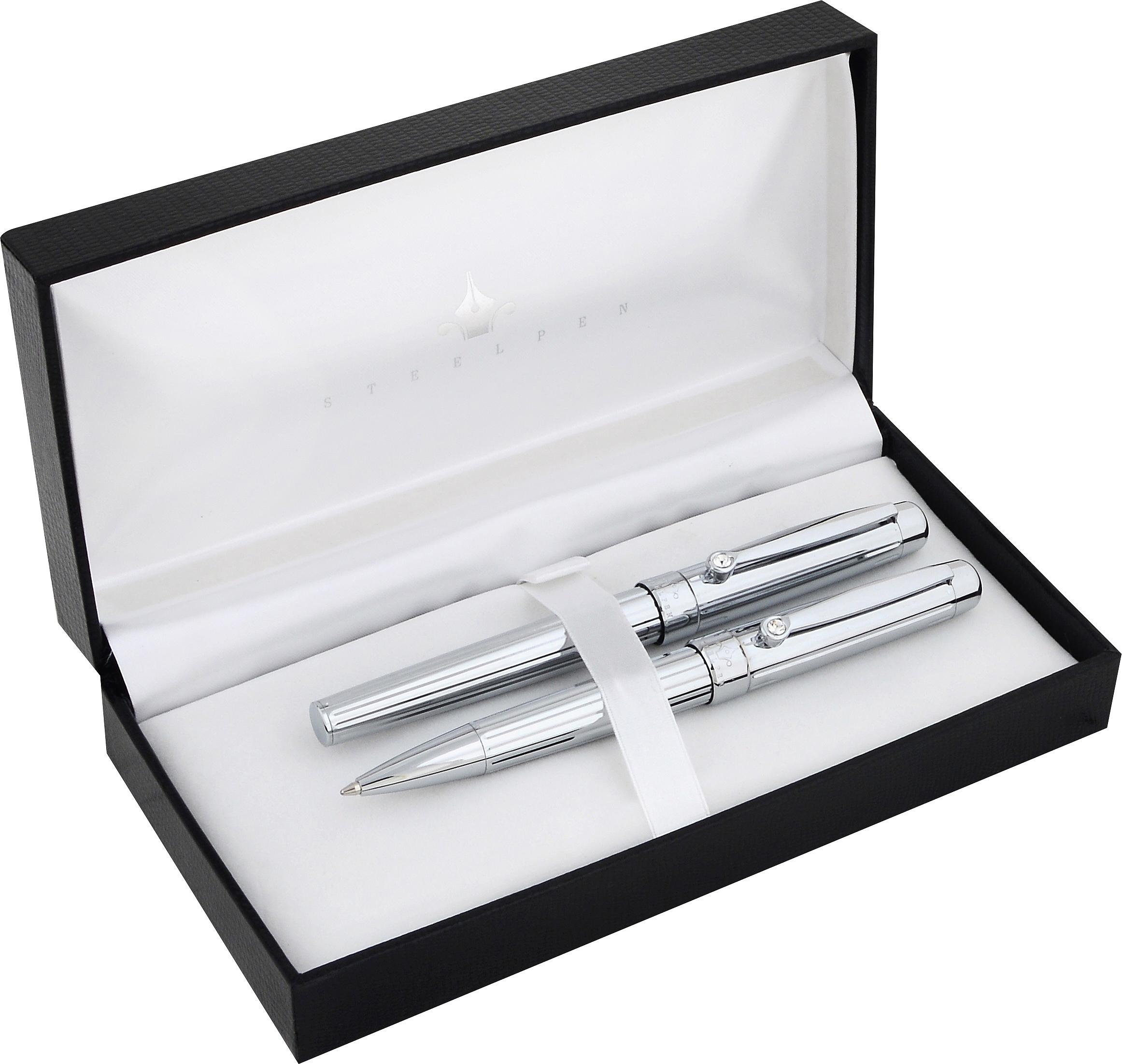 STEELPEN TRUVA SERİSİ 0166DT KROM DOLMA KALEM+TÜKENMEZ KALEM