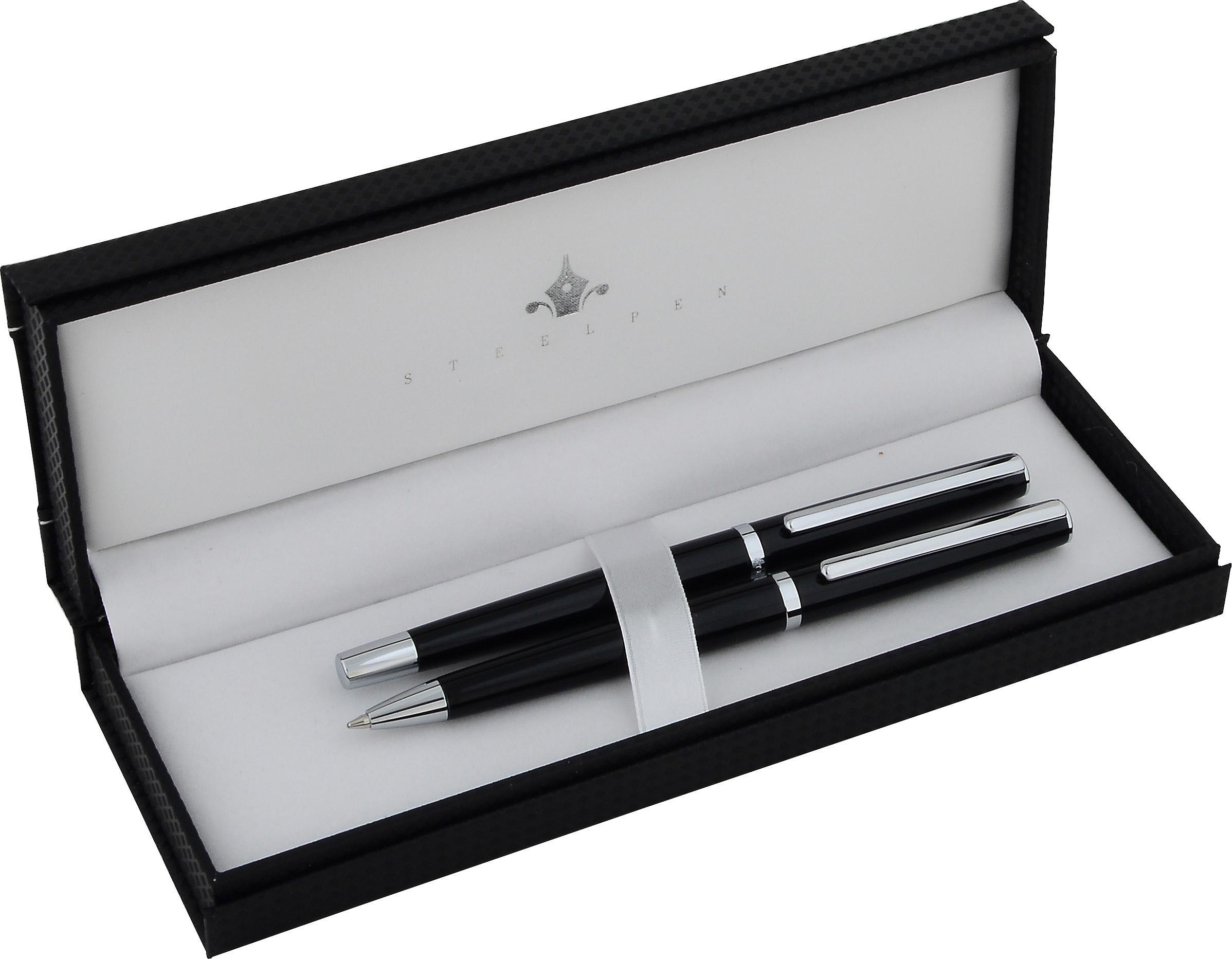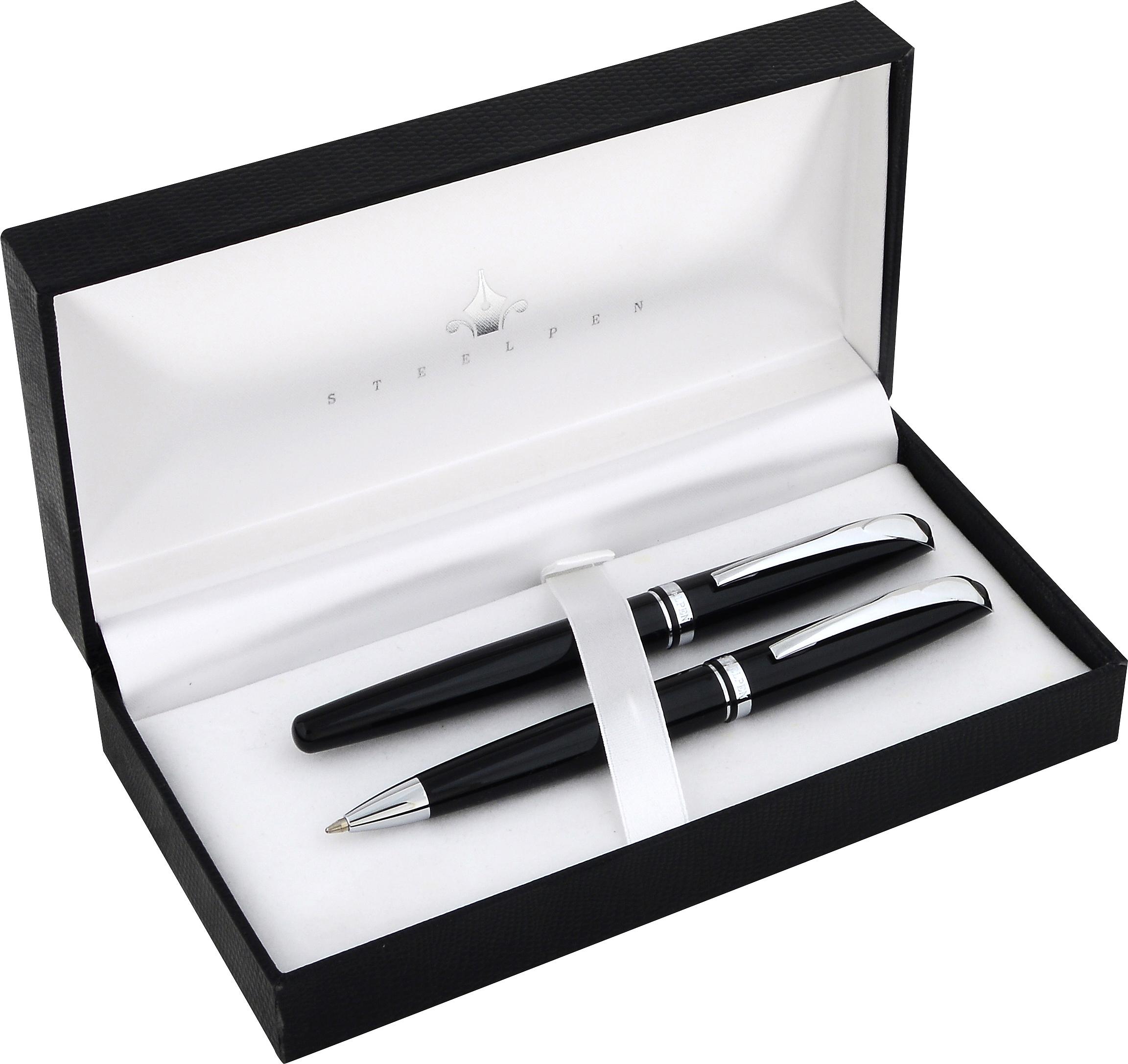 STEELPEN SLIM SERİSİ 8139 SİYAH DOLMA KALEM + TÜKENMEZ KALEM
