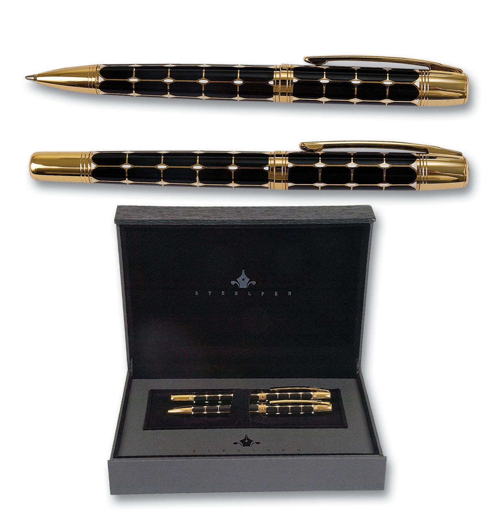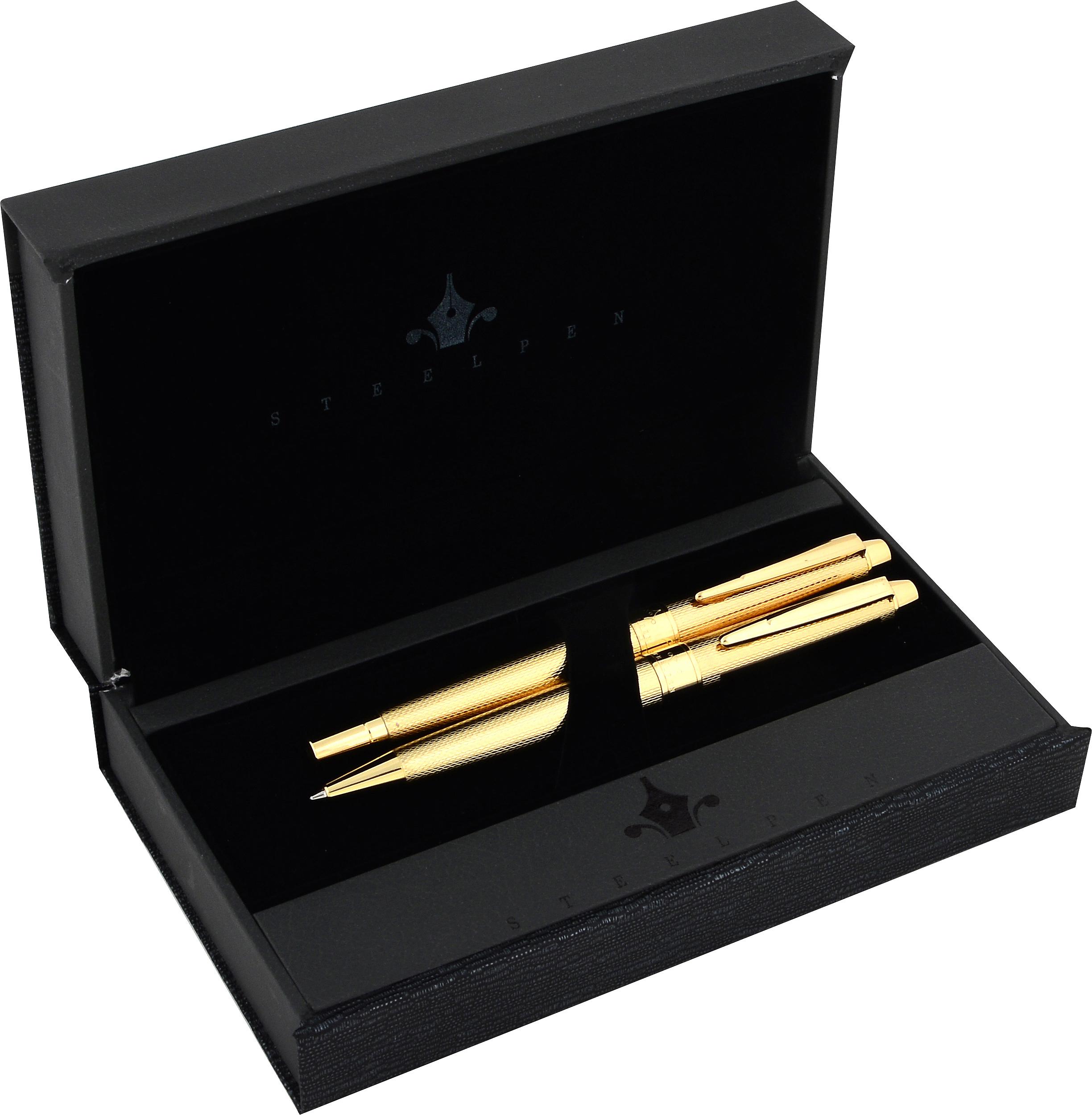 STEELPEN TRUVA SERİSİ 0168DT DESENLİ GOLD DOLMA KALEM+TÜKENMEZ KALEM