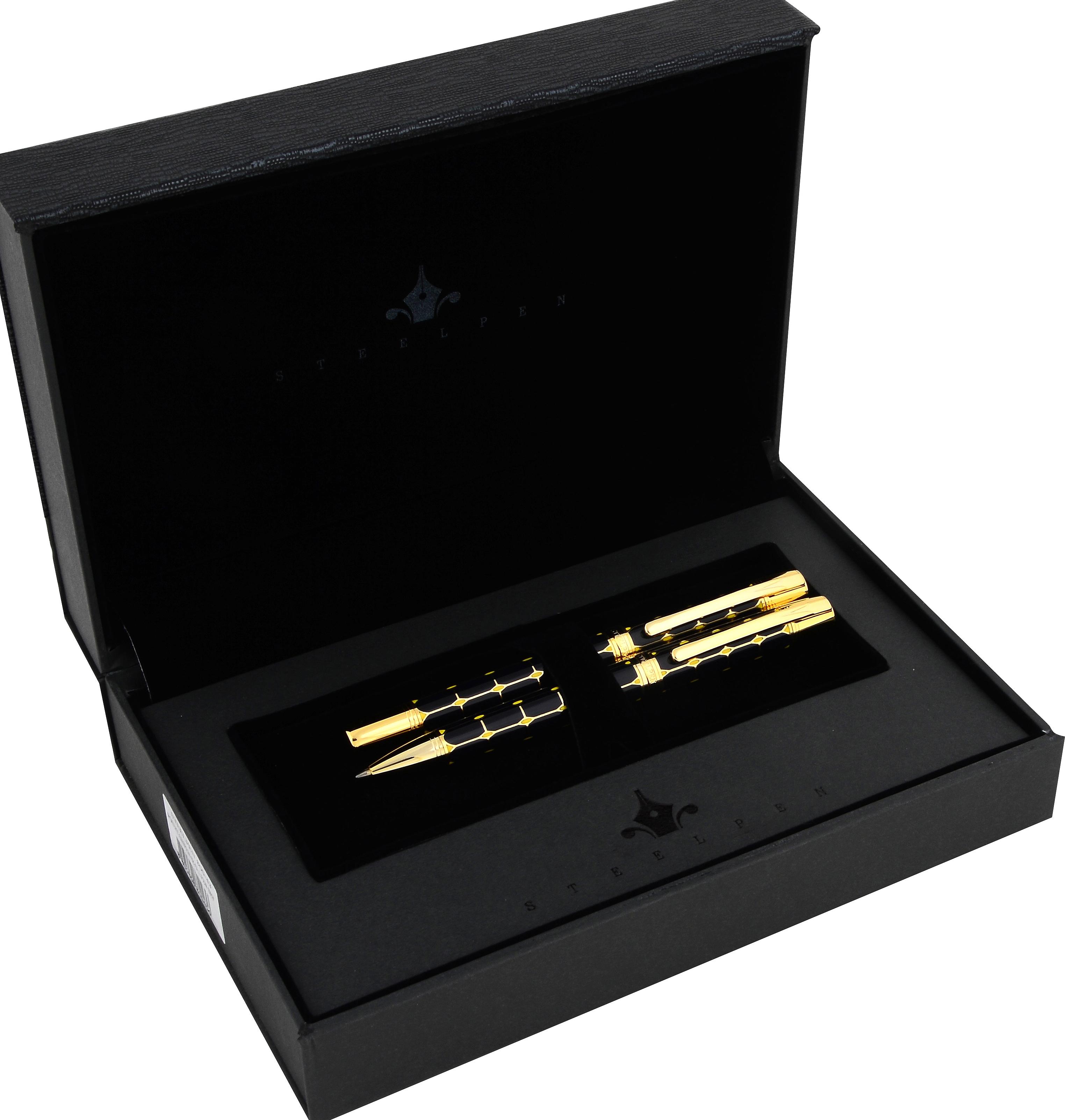 STEELPEN SERRA SERİSİ 800-42 SİYAH GOLD DOLMA KALEM + TÜKENMEZ KALEM