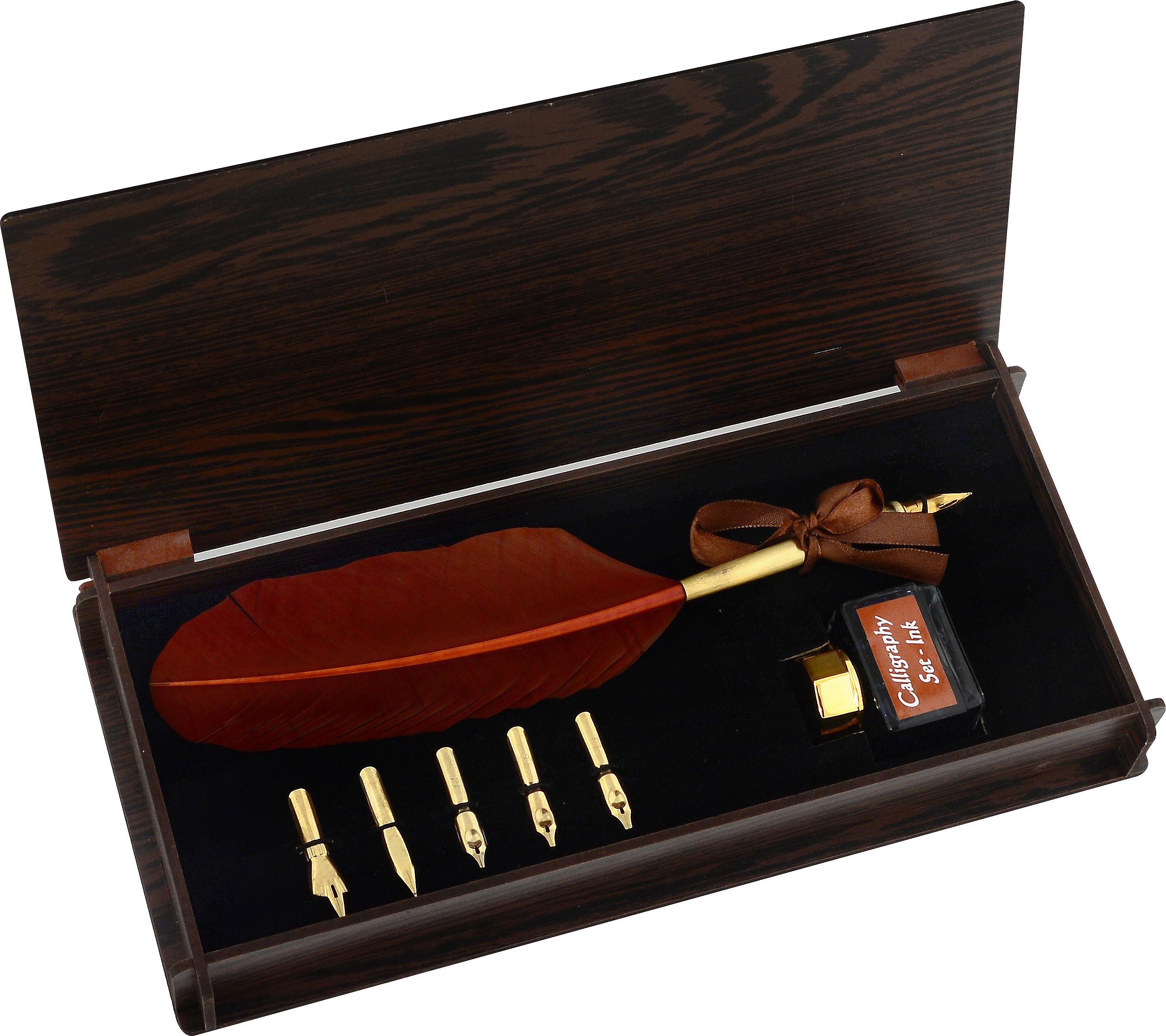 STEELPEN CALLİGRAPHY SERİSİ CS-0207 AHŞAP SET (MÜREKKEP+5 FARKLI UÇ+ KUŞ TÜYÜ KALEM -4FARKLI KUŞTÜYÜ KALEM RENGİ VARDIR)