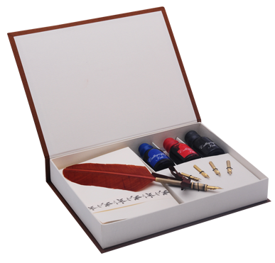 STEELPEN CALLİGRAPHY SERİSİ CS-1228 KUŞ TÜYÜ SET (3 FARKLI MÜREKKEP+5 FARKLI UÇ+ ZARF SETİ+KUŞ TÜYÜ KALEM)